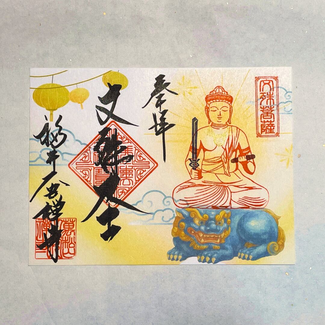 ●智慧の仏・文殊菩薩坐像 御朱印 サイズ:200×150